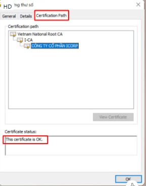 Tại mục “Certification Path” để kiểm tra trạng thái hoạt động ok hay không như hình minh họa sau: